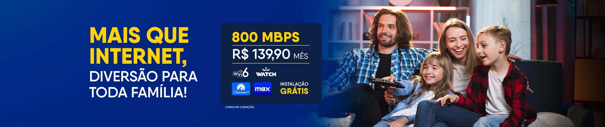 - Modem Wi-Fi 6 adicional em Mesh por acréscimo de apenas R$29,90 ao mês.